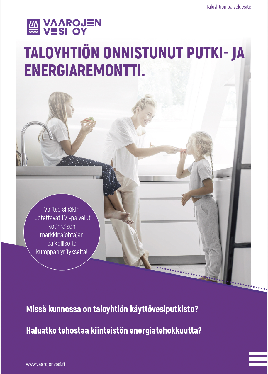 Useissa taloyhtiöissä kokonaisvaltainen käyttövesi- ja lämpöverkostoremontti on tuonut useiden tuhansien eurojen vuosisäästöt.